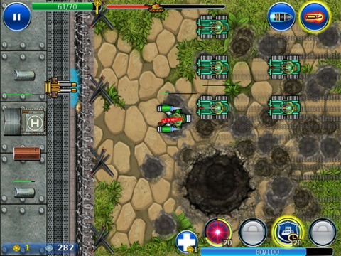 Tank ON is the arcade with RPG elements. You have to defend your base from the attacks of enemy jeeps, tanks and helicopters.