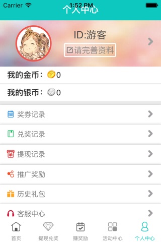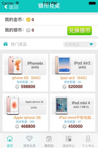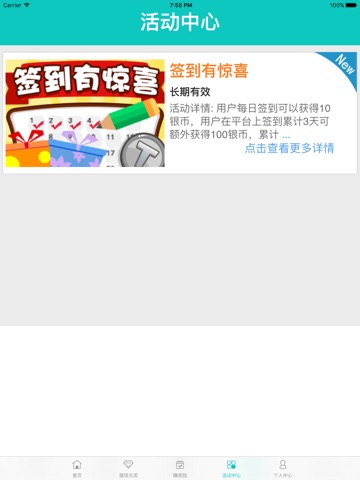 参加APP中的活动获取大量银币和金币,银币可以用来兑换各种各样的奖品,金币可以用来提取现金。