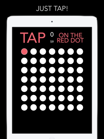 You have 60 seconds to tap the red dot as many times as you can to get points. Tap the white dots and lose points.