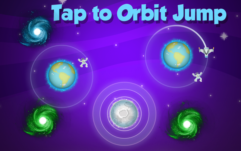 Rescue astronauts drifting in space with your space ship. Navigate it by well-timed gravity leaps and orbit jumps.