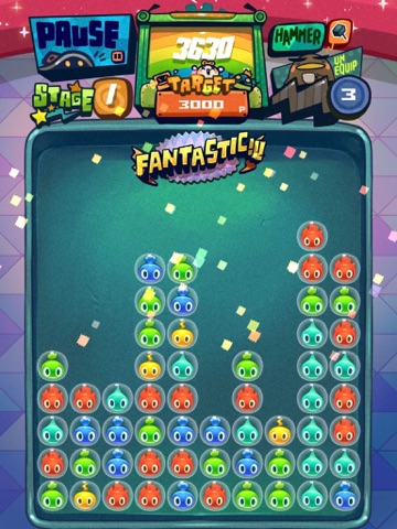 Tap two or more connected bubbles of the same color to clear the bubbles.