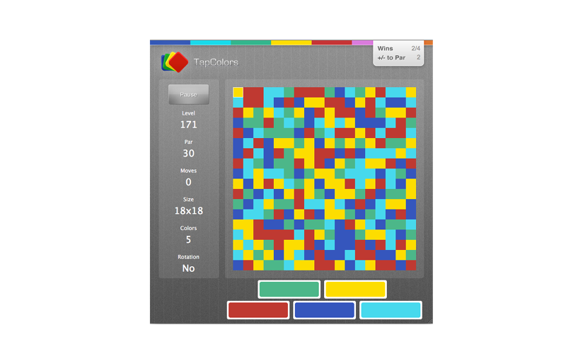 In Tap Colors, your goal is to fill the board with a single color. Start in the top-left and work your way through the board.