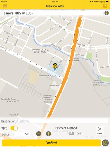 Le falta una opcion de conductor novato o experimentado con su pago justo. Tambien falta el taximetro previo que le de al pasajero un estimado del servicio. Felicitaciones a Tappsi