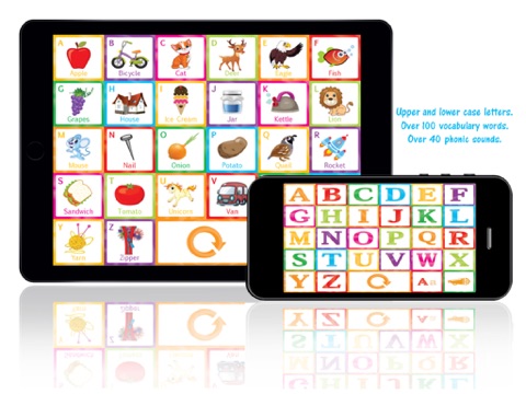 Kids will love this simple app that lets them learn the alphabet and over 100 vocabulary words on a single screen! Phonics, colorful graphics and professional voice-over help kids learn more effectively. Kids can tap each letter of the alphabet multiple times to learn up to four vocabulary words starting with each letter of the ABCs, as well as beginning-word phonics!