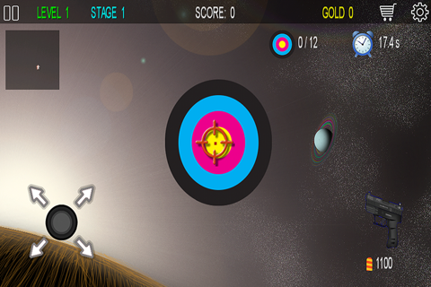 The game has 10 stages on each level with various target sizes and movements.