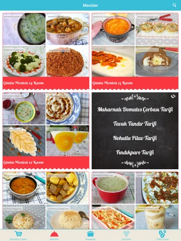 Tüm tarifler evde günlük malzemelerle kolay uygulanabilir şekilde ve tariflerin anlatımı da çok iyi. Videolarda var. Günlük menülerde oluşturulmuş. Görsel olarak da şahane. Hiç durmayın hemen indirin.
