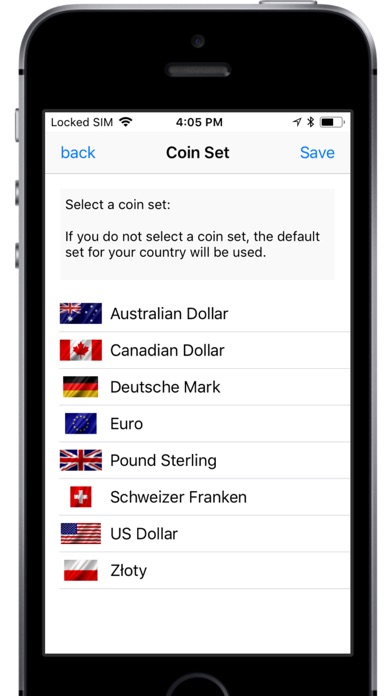 In the Pro Version you can additionally choose the coin set freely.