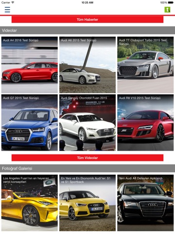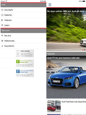Tasit.com Audi uygulaması, bulunduğunuz bölgedeki en iyi ikinci el Audi fiyatlarından haberdar olmanızı sağlar. En sevdiğiniz Audi haberlerini, Audi videolarını, Audi test sürüşü videolarını, Audi fotoğraflarını ve ikinci el Audi araç ilanlarını favorilerinize ekleyerek, dilediğiniz zaman yeniden kolayca ulaşabilir ve kullandığınız sosyal paylaşım uygulamaları ile sevdiklerinizle paylaşabilirsiniz.