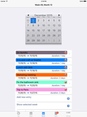 Ce 2 en 1 ne réussi pas a faire bien sur les deux points principaux Pour la partie Cal (Tasks and Cal) je préfère de loin miCal ou week calendar et pour la gestion des taches (la partie Tasks) jutilise todogenius qui est une super application et cerise sur le gâteau les taches se retrouvent dans lagenda de liPhone (Calendar), mais aussi dans week calendar ou dans miCal selon vos préférences.