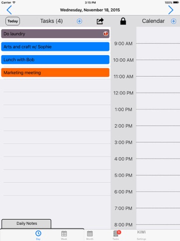 Use the daily, weekly and monthly views to have a complete and precise vision of your tasks. Add or modify tasks and events with a single tap. Add daily notes, if you wish to comment your schedule.