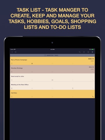 TASK LIST is a Task Manager and To-Do list App for iPhone and iPad that will help you to create and manage simple and comprehensive tasks, become more productive daily and streamline your life.