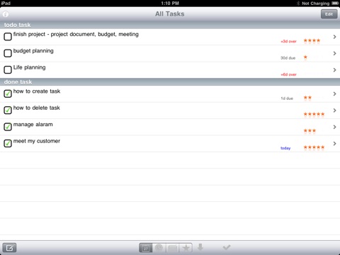 task detail editing (memo, due date, star mark).