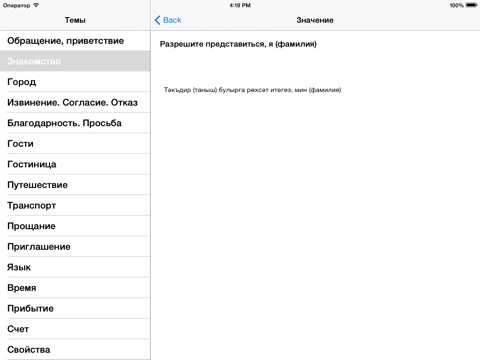 Русско-татарский разговорник предназначается для тех, кто хочет общаться по-татарски на бытовые темы: знакомство, транспорт, магазин, гостиница и т.п.