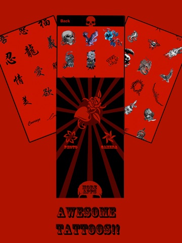 -- Tattoo. is an application contains lots of awesome Tattoos that you can put on your skin. You can pick one of your photo, and then start decorating your photo with the various Tattoos.