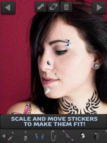 Finally you can create tattoos and piercings pictures with only one app! We present to you your new best friend among photo editors – Tattoo and Piercing Salon! It is a unique photo studio with carefully designed stickers for pics which perfectly portray real tattoo designs and body piercing jewelry. It takes minimum effort and time to manage it, simply take a picture with your selfie camera, or insert one from the phone gallery, and add photo stickers from this salon which you find most suitable. Adjust them to the image, scale, zoom in or out, and, when you are satisfied with your photo montage, save it to the gallery, or share instantly on your favorite social networks, like Facebook, Twitter or Instagram. Create a tattoo or pierce your body virtually, show to your friends and family and watch their reactions. Check out why this special salon app is one of the top photo editing apps, download Tattoo and Piercing Salon and unleash your creativity!