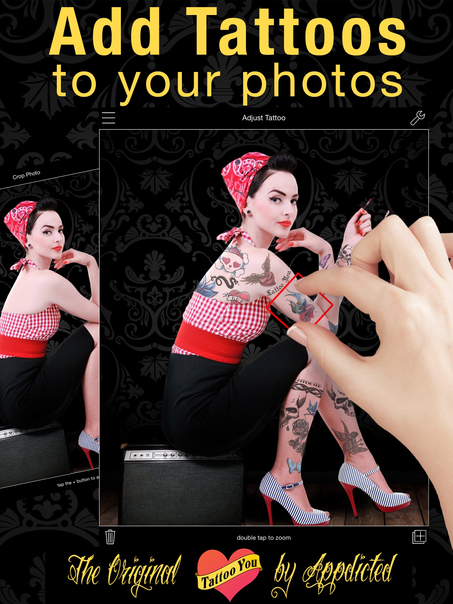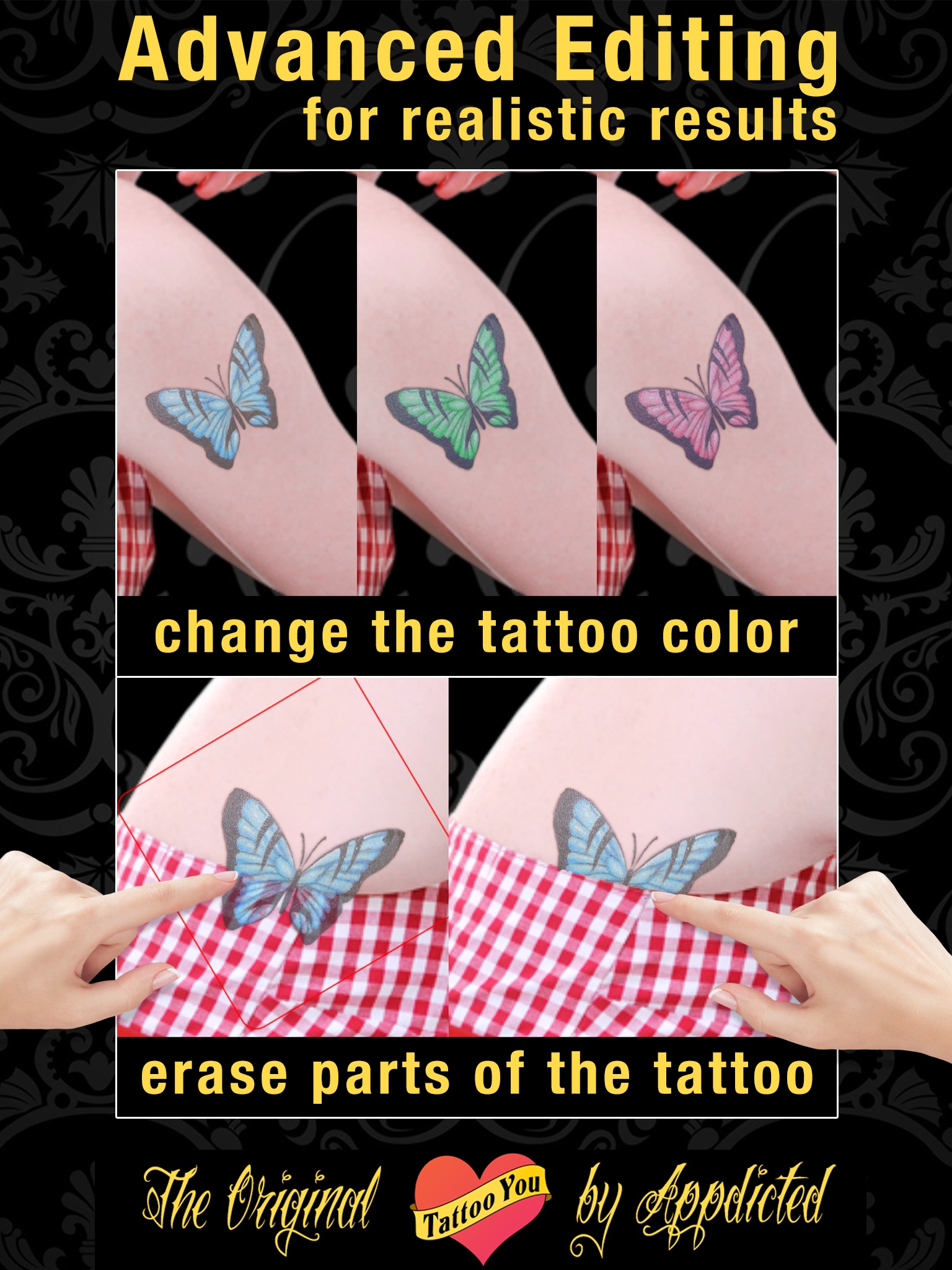 - Browse our many tattoos and place them anywhere on your photos, you control the size, rotation and placement of the tattoo