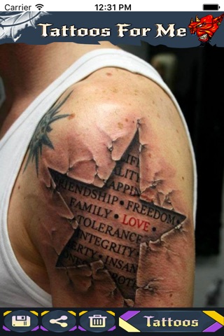 Digitally add Tattoos to your Body. Large number of Tattoos are Available. Take a photo and Add Tattoos and Save them or share them to your friends.
