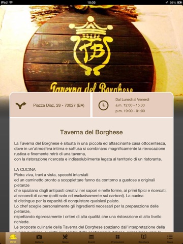 La Taverna del Borghese è situata in una piccola ed affascinante casa ottocentesca, dove, in unatmosfera intima e soffusa si combinano magnificamente la rievocazione rustica e finemente retrò