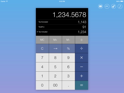 旧バージョンへのリクエストを早々に対応していただきました。 しかもほぼ全て! 大感謝!です。 この電卓は「税込み10000円だと消費税はいくら?抜き価格は?」みたいな 税込み価格から税抜きの価格と消費税額を簡単に計算することができます。 %ボタンがついたので値引き交渉もスムーズだし、 桁取りカンマと00ボタンもついてこの上ありません。 私のような値切られてばかりの商売人さんにはかなり便利な電卓です。 強力にお勧めします。