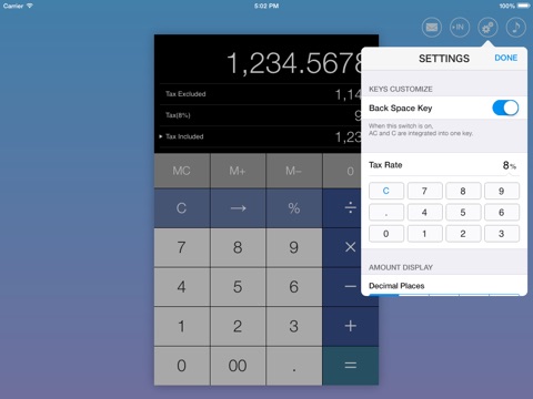 商売人必修!税抜き/税込み金額がすぐに出る便利な電卓です。