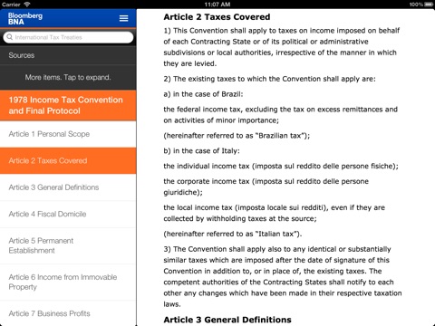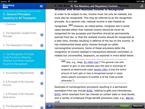 New “app-only” features allow users to turn footnotes on/off, “swipe” through documents in the Table of Contents, save favorite documents for offline viewing, and more. Users can also share links with themselves to access the content at a later time. With this app, Bloomberg BNA Tax and Accounting Center subscribers get the research they need on the go, when they need it.