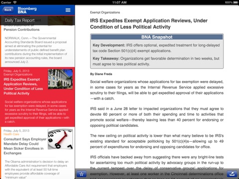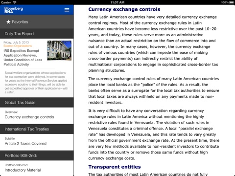 Stay connected to Bloomberg BNA’s Tax and Accounting Center, anytime and from anywhere! The Bloomberg BNA Tax Center App offers Tax and Accounting subscribers easy, on-the-go access to federal, state, and international tax analysis, news, integrated source material, and advanced search features, all on their iPhone and/or iPad. This free app provides seamless navigation of Bloomberg BNA’s award-winning and renowned tax management expertise and information. Here is just a sample: