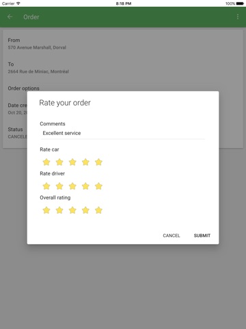 Give feedback to the taxi company about the quality of service you received.