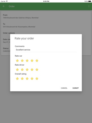 Give feedback to the taxi company about the quality of service you received.