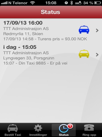 - Trenger man stor bil kan man gå inn på "Anrop" og ringe Telemark Taxi for bestilling