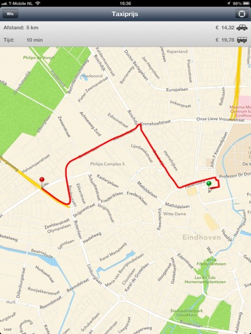 Vanaf nu kom je nooit meer achteraf voor verrassingen te staan! Met Taxiprijs bereken je namelijk eenvoudig hoeveel het ritje ongeveer gaat kosten. Je kunt de ritprijs gemakkelijk laten berekenen vanaf je huidige locatie of vanaf een zelf ingevoerd adres. Daarnaast krijg je de snelste route ook meteen op de kaart te zien.