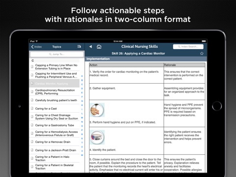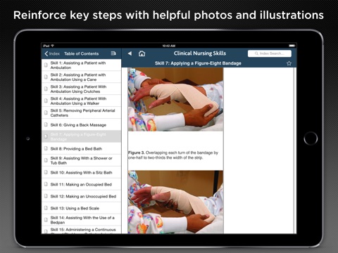 This app contains hundreds of illustrations and photos to help demonstrate key techniques for each skill. Rationales accompany each nursing action to promote a deeper understanding of the principles supporting nursing care.