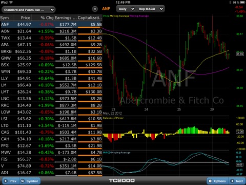 TC2000 automatically syncs with your personal WatchLists, EasyScans and chart templates from TC2000 program on your Mac/PC. It includes built-in WatchLists for stocks, indexes, ETFs and industry groups.