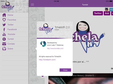 Oi gente! ^^ Olha eu aqui de novo, agora na versao 2.0 do App do BlogTchelaVih! Agora mais estiloso com um design flat pra combinar com novo iOS! o/ Com ele você vai poder acompanhar de perto todas as dicas, novidades, notícias e vídeos mais recentes. Também será o primeiro a ficar sabendo quando um novo post for lançado, sabe por quê? O aplicativo conta com a função de notificação via Push! Demais ein?! Assim você estará sempre ligado em tudo que tiver rolando por lá! ;)