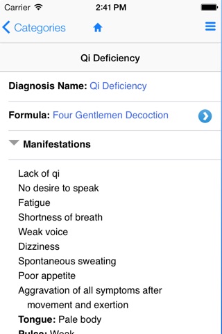 This app is designed for Traditional Chinese Medicine (TCM) practitioners and students to quickly and easily find the right diagnosis and associated herbal formula to use in practice or for learning. Within the complex systems of diagnosis in TCM, this app enables you to efficiently search or browse from a comprehensive library of diagonses and identify a suitable formula for specific symptoms and individualized treatments.