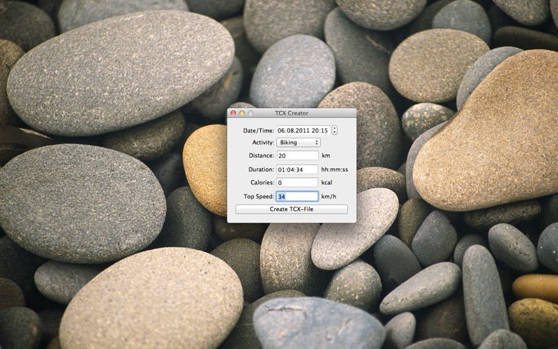 Start the App, enter the requested informations and save the TCX file.