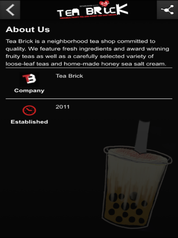Tea Brick is a neighborhood tea shop committed to quality. We feature fresh ingredients and award winning fruity teas as well as a carefully selected variety of loose-leaf teas and home-made honey sea salt cream. Download our App for menu, stamps card, coupon, offers and so much more!