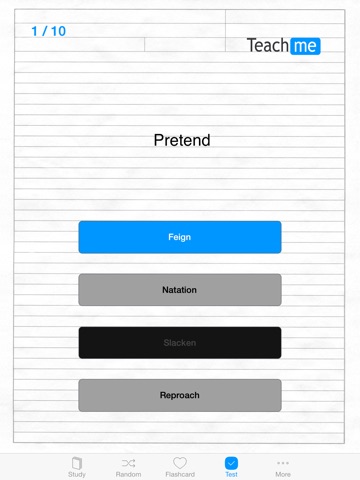 - Test: Multiple choice quiz to test your progression, share your score on Twitter and Facebook.