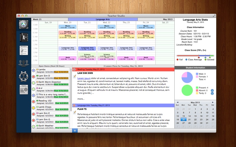 Teacher Studio 2 was created by a teacher to help other teachers manage their classrooms efficiently so they can focus on what matters most -- teaching. Teacher Studio 2 is the only Mac software that has all of the different "modules" under one roof. Teachers no longer have to purchase separate software (with each costing just as much or more than Teacher Studio 2) from different vendors to manage their daily administrative tasks. But most importantly, teachers no longer have to deal with the impossible task of making all these different software "talk" to each other. With Teacher Studio 2, everything is under one roof. Managing daily classroom administrative tasks has never been easier.
