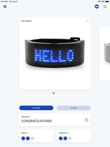 The Team Up for Change app allows the user to share and program their devices with personalized messages using our patented LED technology.