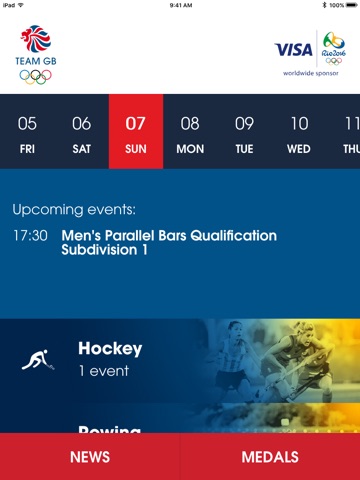 The official Team GB Rio 2016 Olympic Games app, in partnership with Visa, brings you closer to all the action in Brazil. Once competition commences The Team GB app will provide all the Rio 2016 event scheduling for Team GB athletes so you never miss your favourite athletes and sports, as well as all the days results and Team GB medal wins.