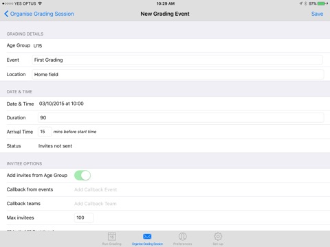 Team Grader comes with a pre-defined grading process (for any team sport) which can be tailored for your club. Run grading in a fully electornic way (with scores recorded on an iphone in real-time) or use the supplied paper forms and enter the data later.