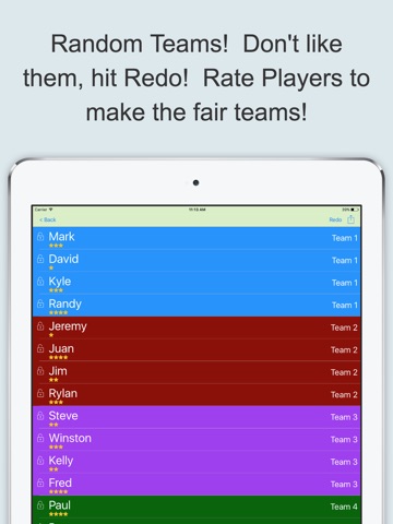 How about being able to rate players and have the app automatically separate the best into teams! Turn player Ratings on and off in the settings menu!