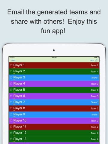 This app makes separating teams a breeze, set the total number of players, number of teams and generate teams! No names needed, just line people up and hit generate.