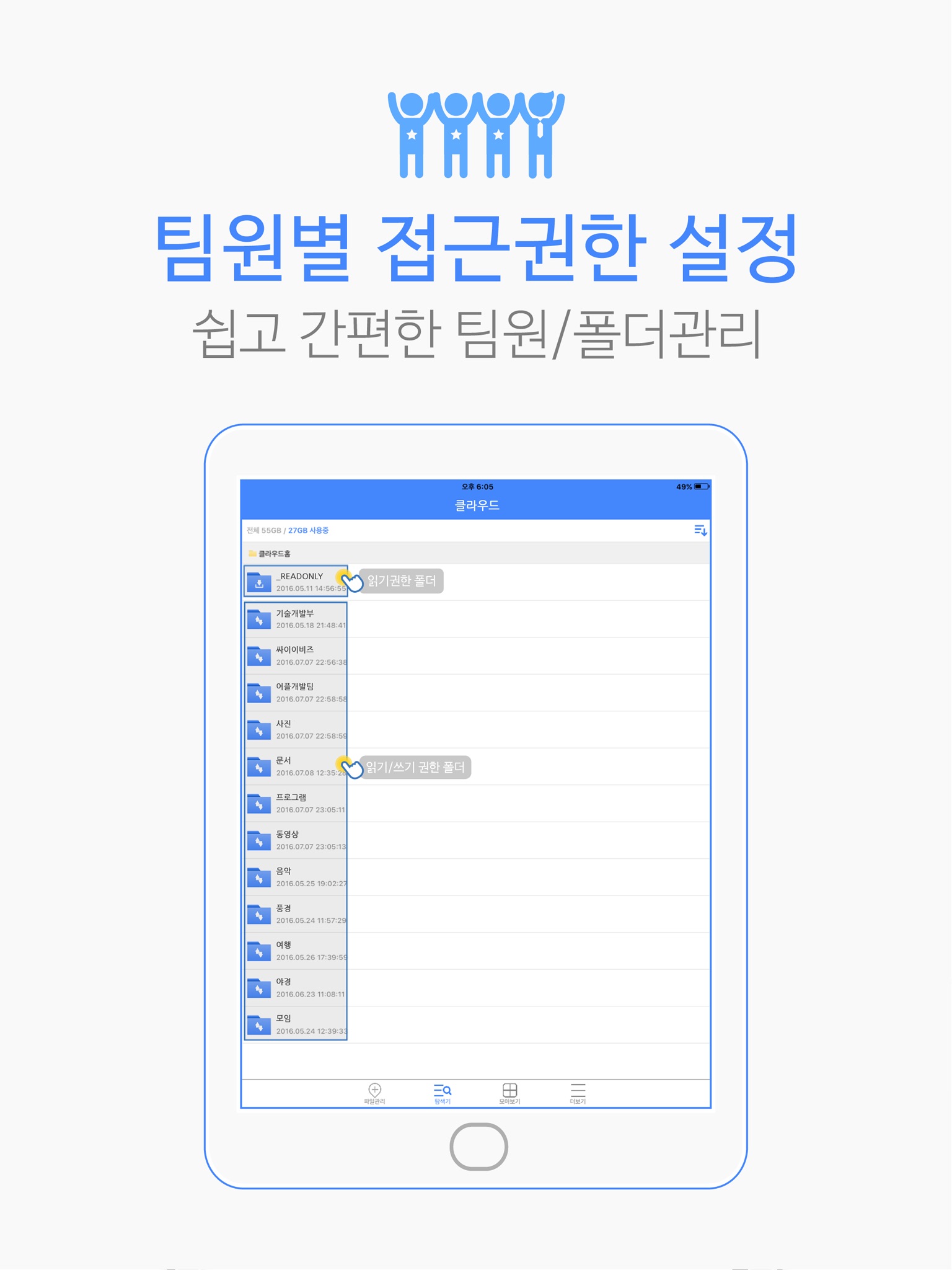 회사, 가족, 친구, 학교, 단체, 동아리등 여러 모임에서 필요한 파일들을 팀으로 관리하고 팀원들과 공유해 보세요.