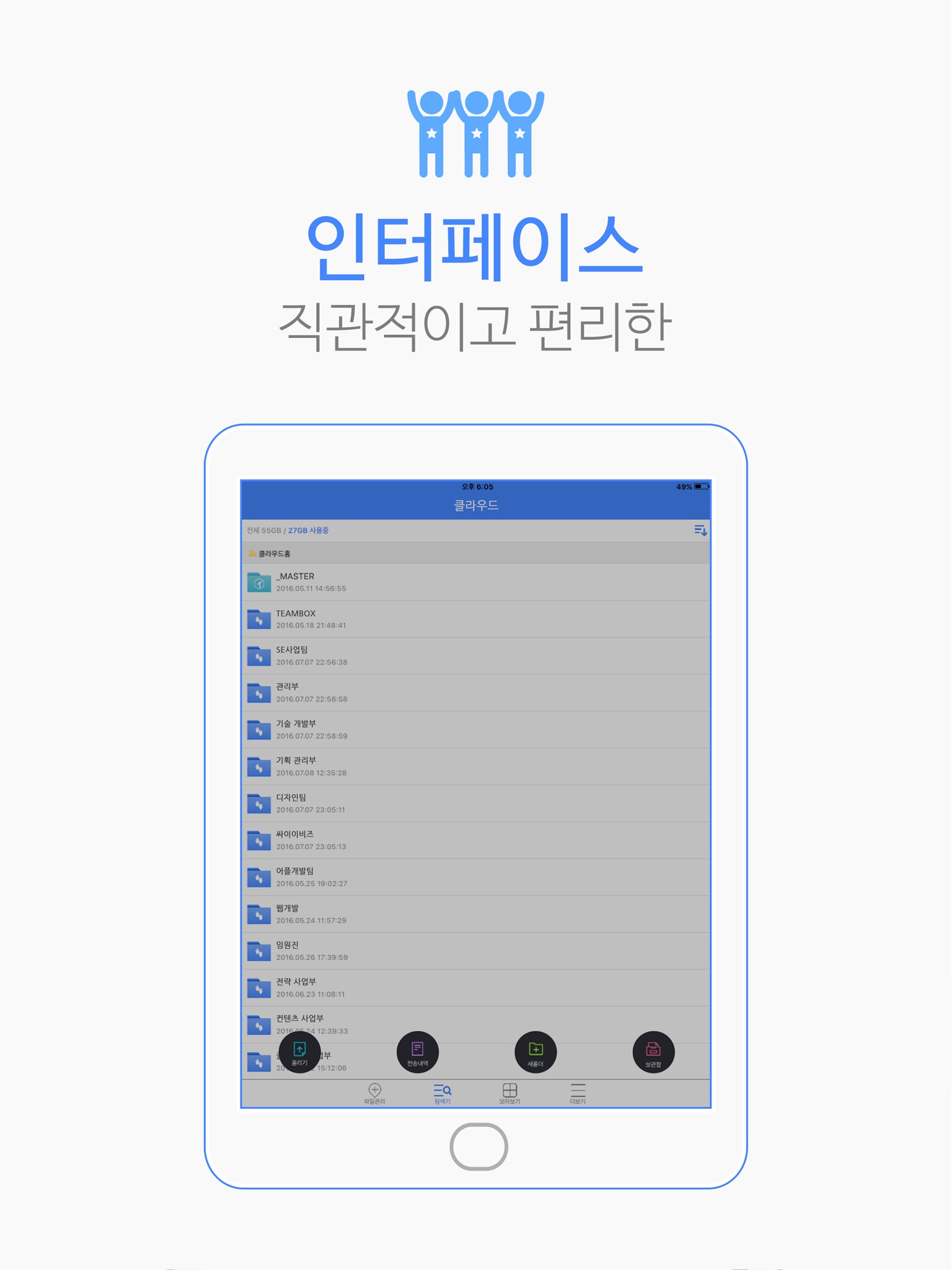 TEAMBOX 서비스는 PC, 스마트폰, 태블릿을 통해 가장 편리한 방법으로 클라우드에 이용할 수 있도록 도와 드립니다.
