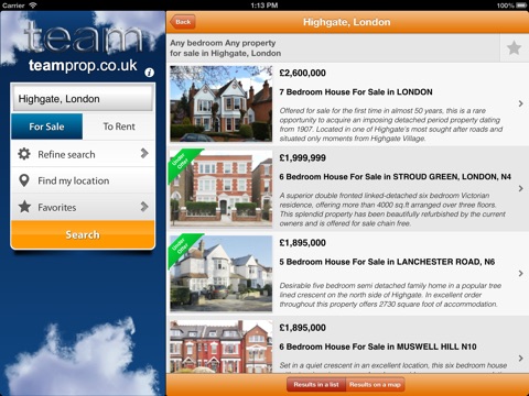Enjoy the rich user experience of Teamprop property search on your Iphone anytime and anywhere. Team’s unique, computerised multi-listing system ensures that properties are always up to date, making Teamprop the most up to date UK property portal.