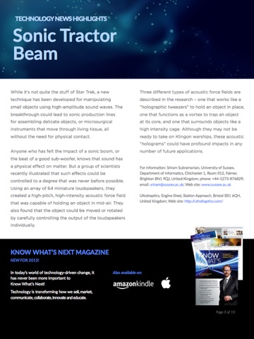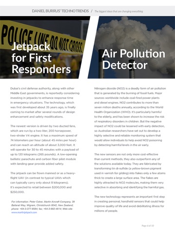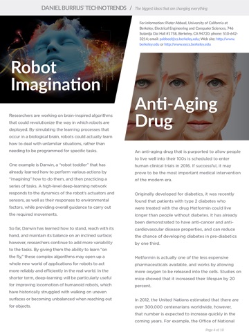 Each issue of the newsletter includes a feature column written by Daniel Burrus* that offers readers innovative strategies for the creative application of new and emerging technologies. In addition, concise, easy-to-read news articles describe the latest breakthroughs in technology from around the world in a variety of fields including medicine, telecommunications, alternative energy, nanotechnology, bioengineering, genetics, security and many more.