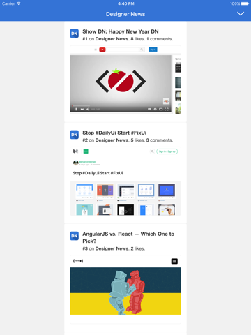 It collects popular posts from Designer News, Hacker News, Product Hunt, Github, Front-end Front, Sidebar, Echo JS, WebDesigner News, Medium, Lobsters and Growth Hackers and more to come upon request.
