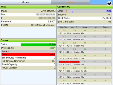 * Query modems by the MAC address, or the subscriber’s Last Name or Phone Number. If an exact match, the search result will display the modem queried. If more than one modem matches the search criteria, such as a customer’s last name, a summary list of all modems that match will be displayed, showing customer name, address, phone, and whether the modem is in an alert state or off-line.