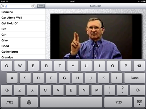 The full version displays video and description of over 2000 words, with almost two hours of filmed material. The words are searchable and also arranged in categories and hand shapes. Children and the illiterate can also search through some movies based on images instead of text.